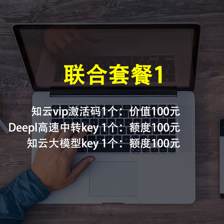 两个套餐价值都是300元。区别如下表。核心区别在于联合套餐2没有单纯的deepl key,而是知云大模型 200元额度的key。